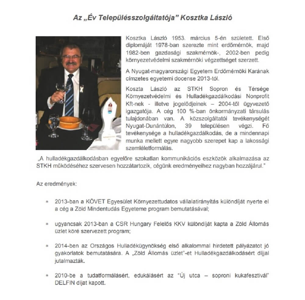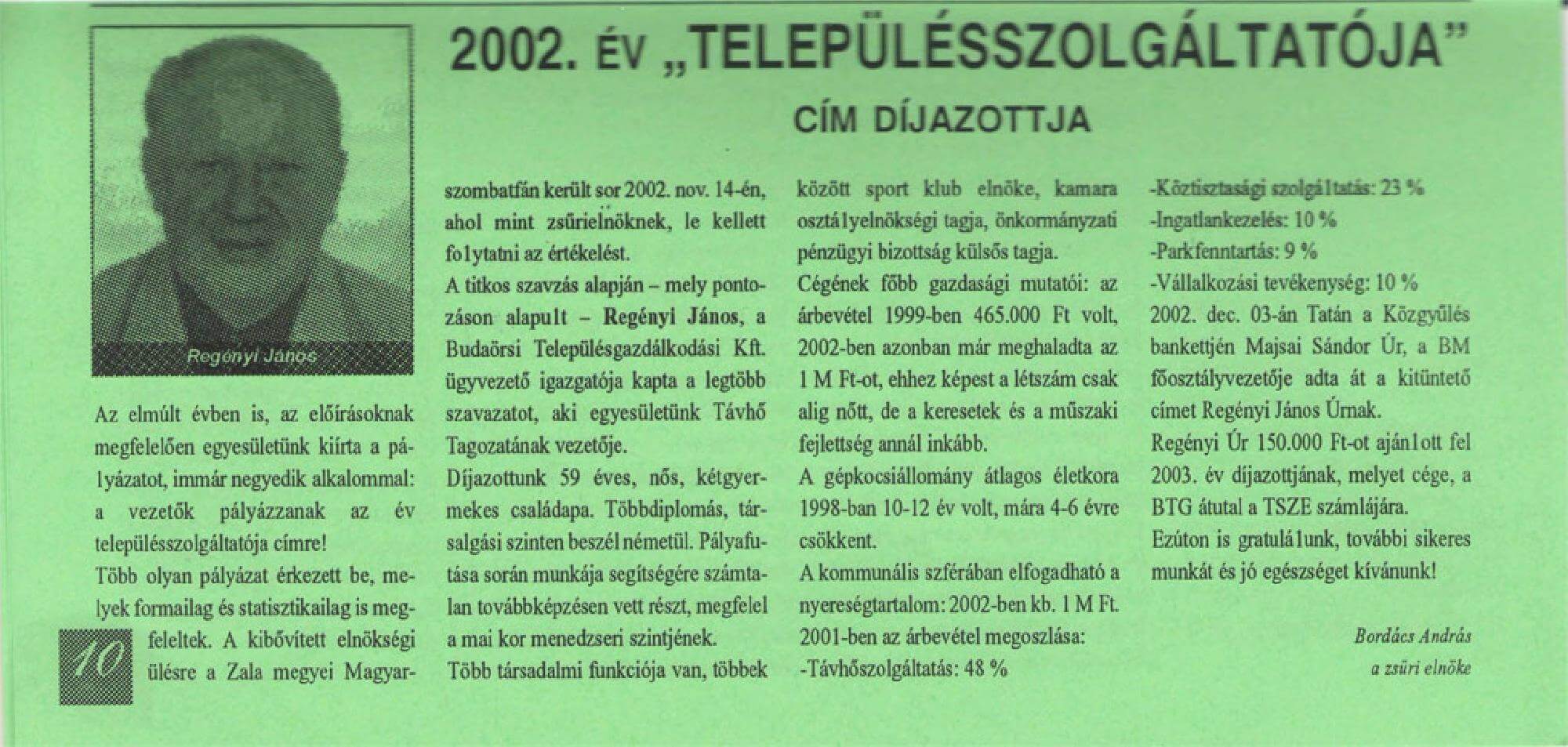 "Az Év Településszolgáltatója" cím elnyerésére pályázhat, aki a településszolgáltatási szférában cégvezetőként eltöltött minimum 5 évet, illetve Egyesületünkben legalább 3 éves tagsági viszonnyal rendelkezik. A pályázat nyílt pályázat. A pályázat benyújtására évente egy alkalommal van lehetőség.